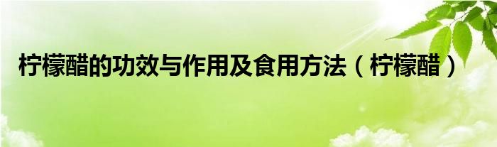 柠檬醋的功效与作用及食用方法(柠檬醋),在线等,很急,求回复!