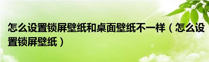 你们好,最近小时发现有诸多的小伙伴们对于怎么设置锁屏壁纸和桌面壁纸不一样,怎么设置锁屏壁纸这个问题都颇为感兴趣的,今天小活为大家梳理了下,一起往下看看吧。