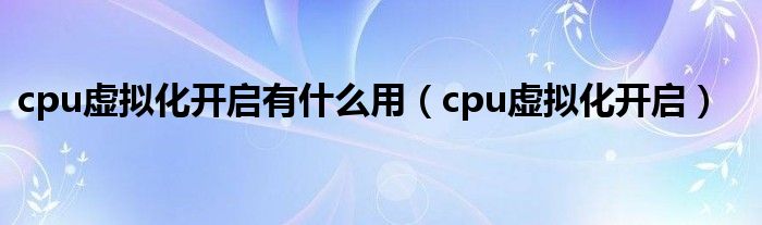 以上就是cpu虚拟化开启这篇文章的一些介绍,希望对大家有所帮助。
