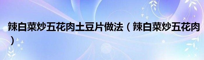你们好,最近小时发现有诸多的小伙伴们对于辣白菜炒五花肉土豆片做法,辣白菜炒五花肉这个问题都颇为感兴趣的,今天小活为大家梳理了下,一起往下看看吧。
