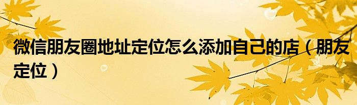 微信朋友圈地址定位怎么添加自己的店(朋友定位),急!求解答,求不沉贴!