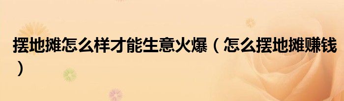 以上就是怎么摆地摊赚钱这篇文章的一些介绍,希望对大家有所帮助。
