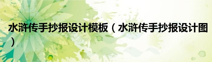 以上就是水浒传手抄报设计图这篇文章的一些介绍,希望对大家有所帮助。