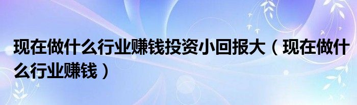 你们好,最近小时发现有诸多的小伙伴们对于现在做什么行业赚钱投资小回报大,现在做什么行业赚钱这个问题都颇为感兴趣的,今天小活为大家梳理了下,一起往下看看吧。
