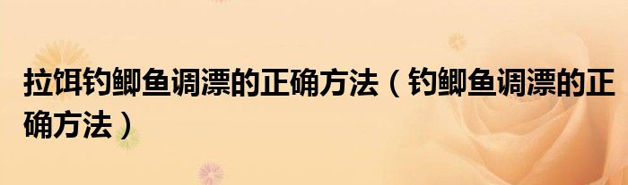 你们好,最近小时发现有诸多的小伙伴们对于拉饵钓鲫鱼调漂的正确方法,钓鲫鱼调漂的正确方法这个问题都颇为感兴趣的,今天小活为大家梳理了下,一起往下看看吧。