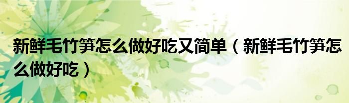 以上就是新鲜毛竹笋怎么做好吃这篇文章的一些介绍,希望对大家有所帮助。