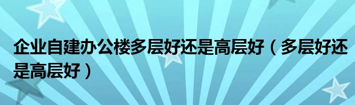 你们好,最近小时发现有诸多的小伙伴们对于企业自建办公楼多层好还是高层好,多层好还是高层好这个问题都颇为感兴趣的,今天小活为大家梳理了下,一起往下看看吧。