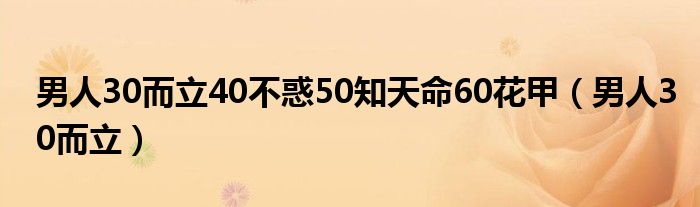 你们好,最近小时发现有诸多的小伙伴们对于男人30而立40不惑50知天命60花甲,男人30而立这个问题都颇为感兴趣的,今天小活为大家梳理了下,一起往下看看吧。