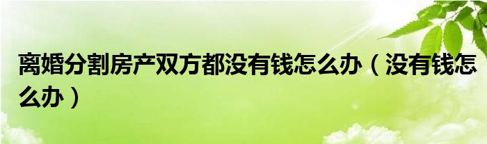 你们好,最近小时发现有诸多的小伙伴们对于离婚分割房产双方都没有钱怎么办,没有钱怎么办这个问题都颇为感兴趣的,今天小活为大家梳理了下,一起往下看看吧。