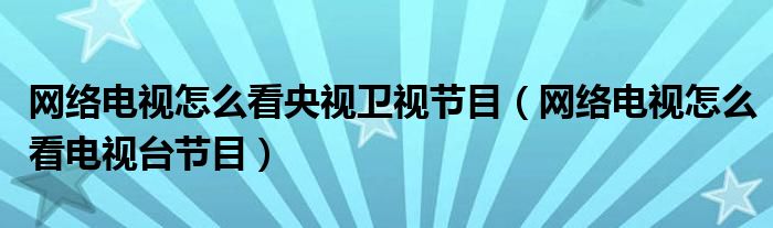你们好,最近小时发现有诸多的小伙伴们对于网络电视怎么看央视卫视节目,网络电视怎么看电视台节目这个问题都颇为感兴趣的,今天小活为大家梳理了下,一起往下看看吧。